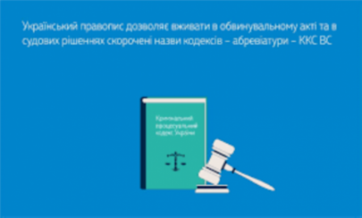 Український правопис дозволяє вживати в обвинувальному акті та в судових рішеннях скорочені назви кодексів – абревіатури.